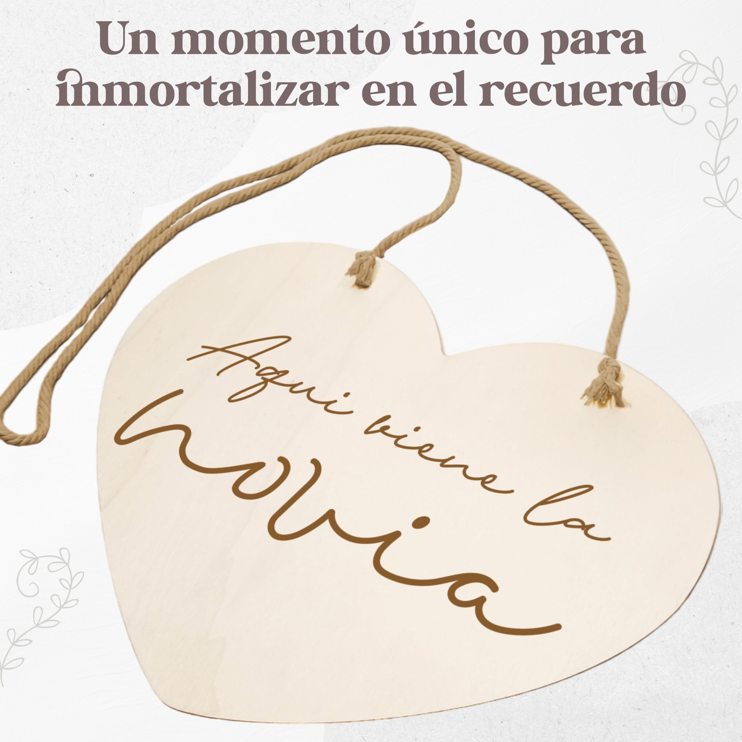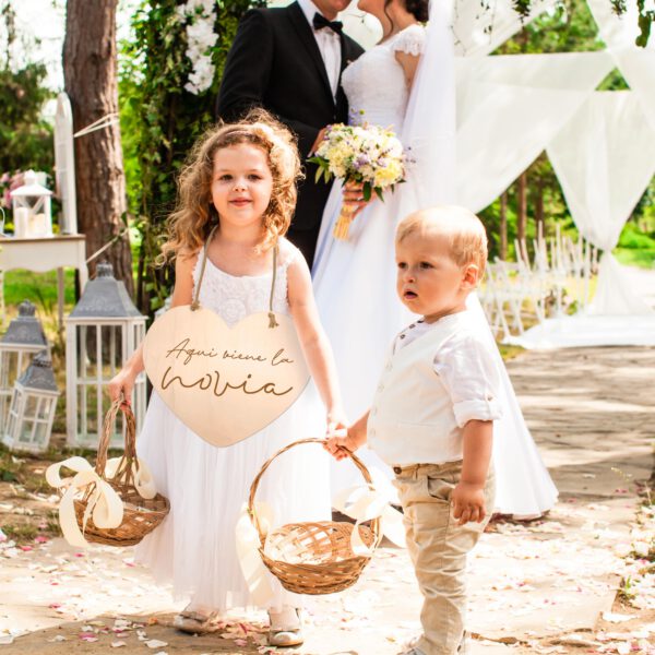 Wooden plaque with the message “Here comes the bride.” To announce the bride’s arrival at the altar at a wedding.