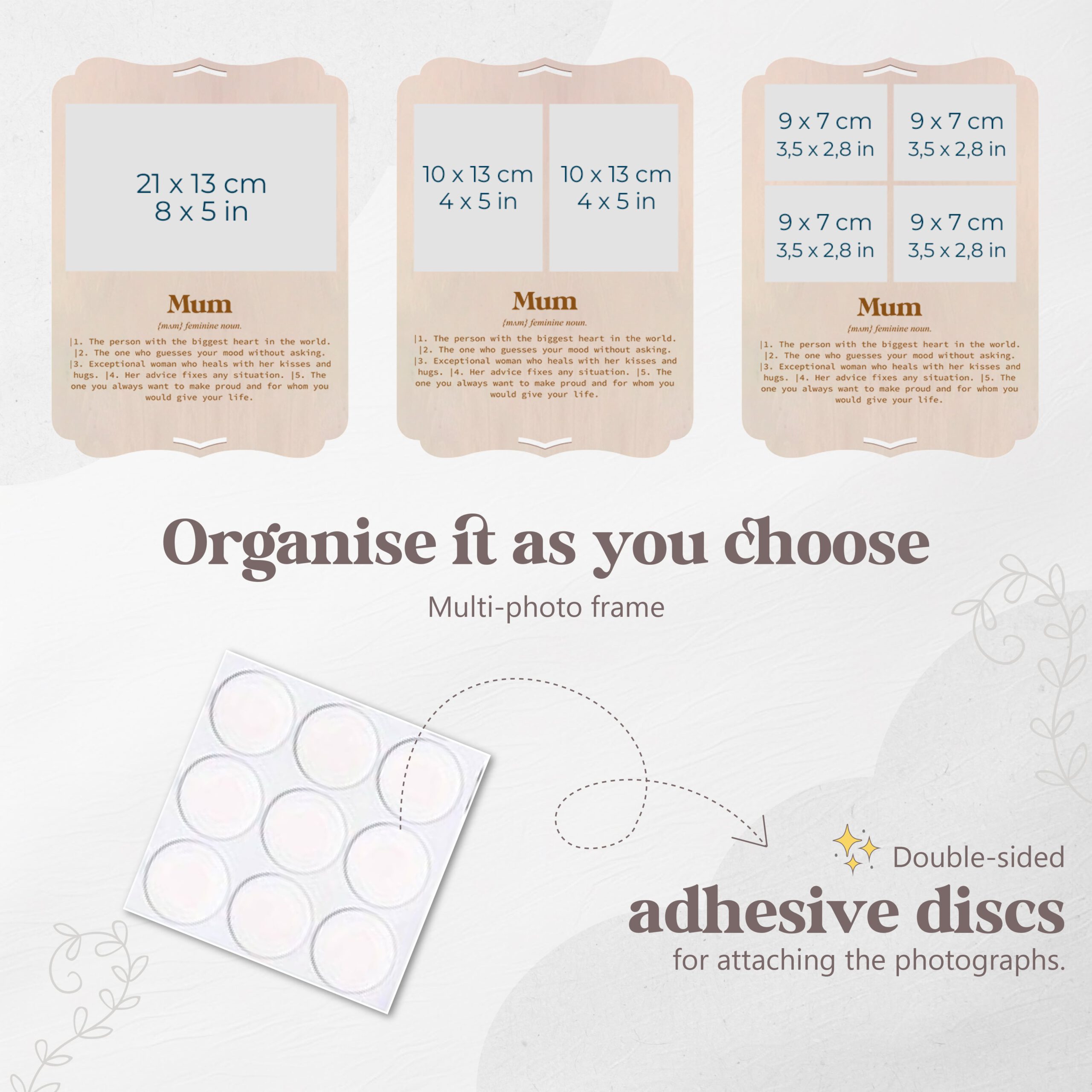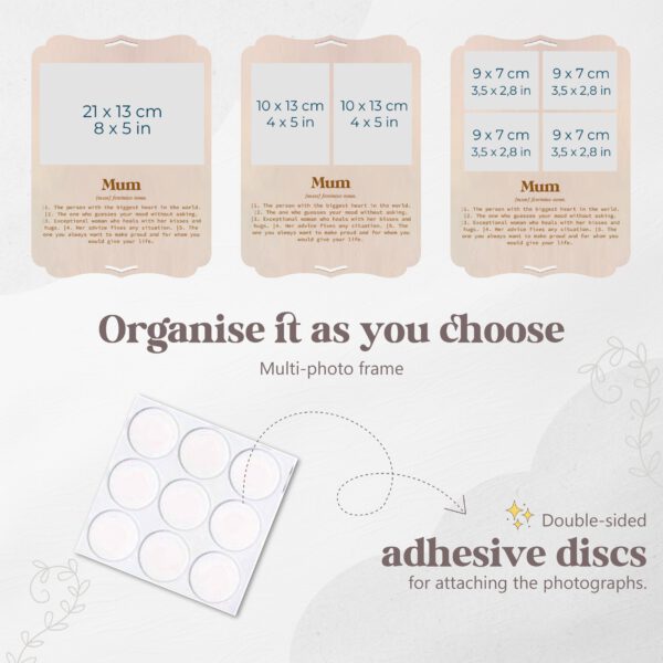 Large photo frame or greeting card, customizable with names, phrases, or dates thanks to the adhesive letter set. With a beautiful saying for an original and personalized gift. For tabletop or hanging.