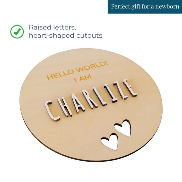 Be the first to review “Wooden birth card “Hello world” with little hearts”