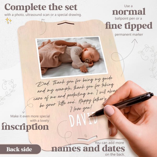 Wooden frame for recording baby handprints, footprints, or even those of the entire family. Customizable with names, phrases, and dates thanks to the set of self-adhesive letters and numbers. With a beautiful quote to give as a gift and touch the heart of whoever receives it. A personalized, unique, and original gift that everyone will love. It comes with a practical tabletop stand and hanging hole, making it a versatile and beautiful decorative piece.